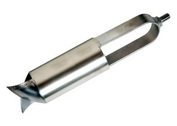 用途:该钻头的设计主要是用来取沙土和比较干燥的土。在该钻头的前端有一长一短两片尖端,并且短的一片的边缘向内弯曲,几乎贴到了长的一片的中间部位。这样在取土时可以z大限度的防止土流失。