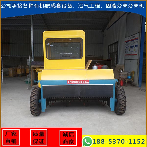 设备安装有滚筒、刀型齿,主要用于平面堆置发酵具有翻拌、破碎双重功效,既能对粪便基料、污泥等物料和菌种进行均匀翻拌,又能对发酵后物料中的板结块进行有效的破碎,是制肥作业中必不可少的专用机具。