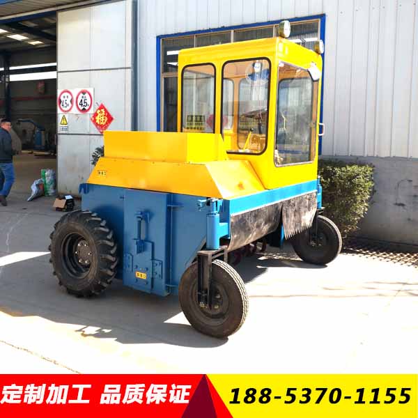自走式翻堆机机与其他类型如“打翻机”、“搅拌机”、“螺旋翻搅机”等相比具有显著特点。自走翻抛机工作原理:采用柴油机作为动力源,通过动力传动传递运动,使用弯刀对物料进行旋翻,由人员驾驶控制自走式翻堆机进行肥料的翻堆发酵。