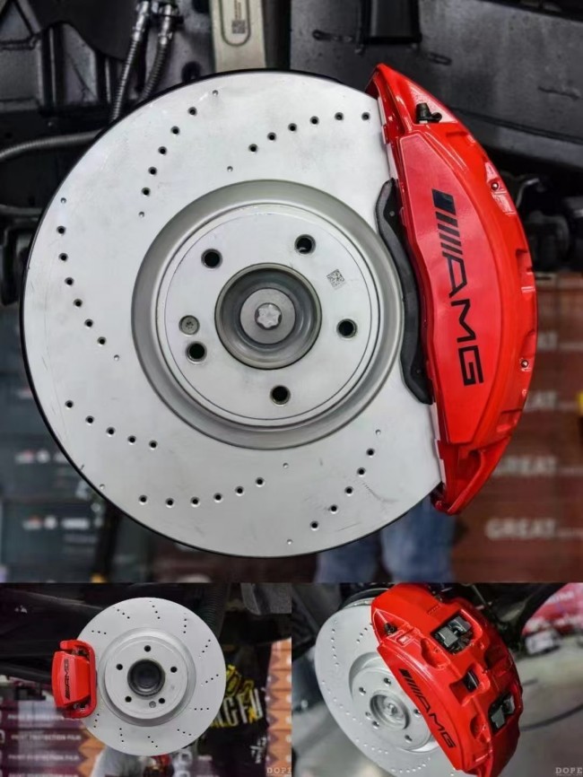 大连德利汽车改装提供的 AMG 刹车卡钳均为正品,所有卡钳、刹车盘、刹车片均带奔驰原厂唯一防伪码,可通过奔驰 PartsInfo 系统溯源。其有专业技师团队进行安装,并使用原厂诊断电脑匹配,还提供刹车油更换、系统排空一站式服务,支持旧件回收。